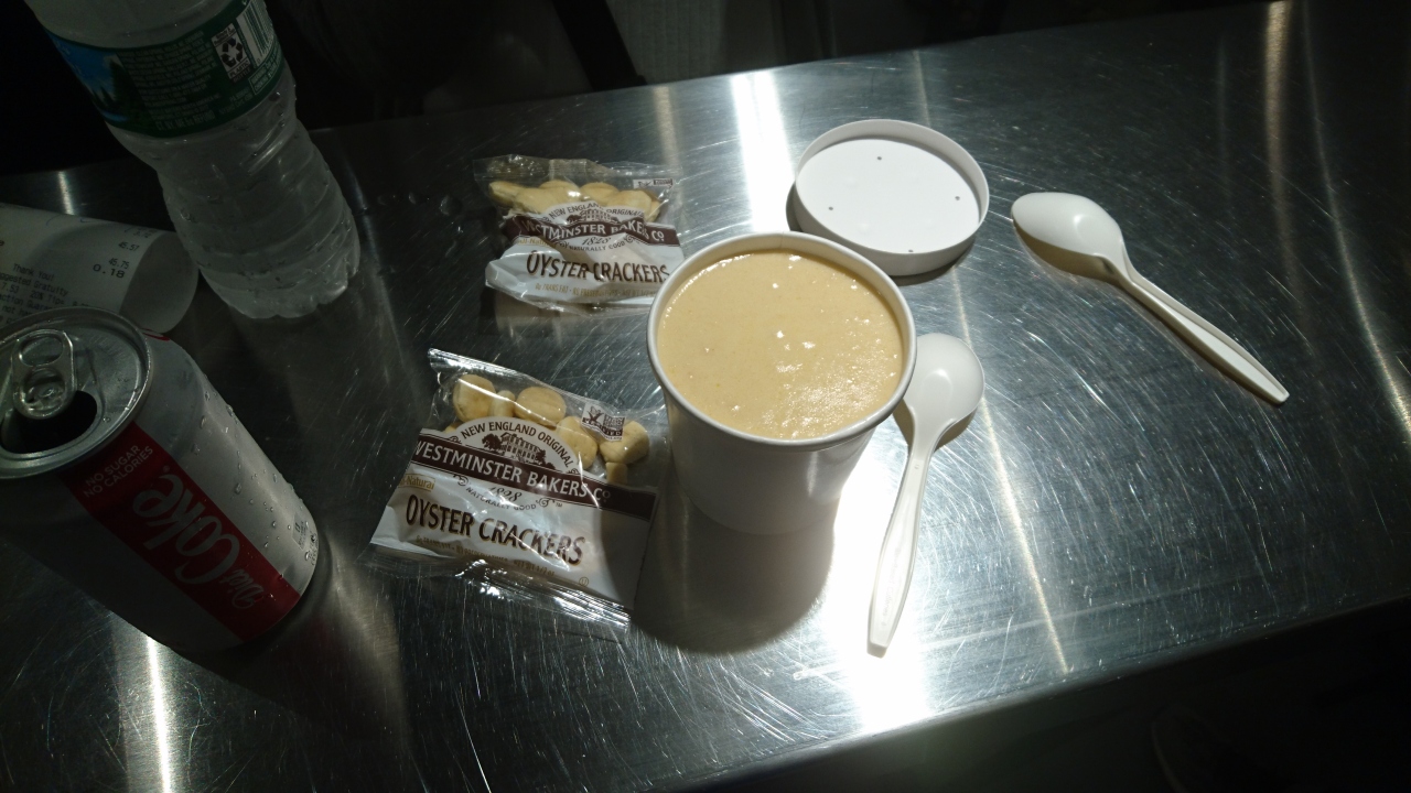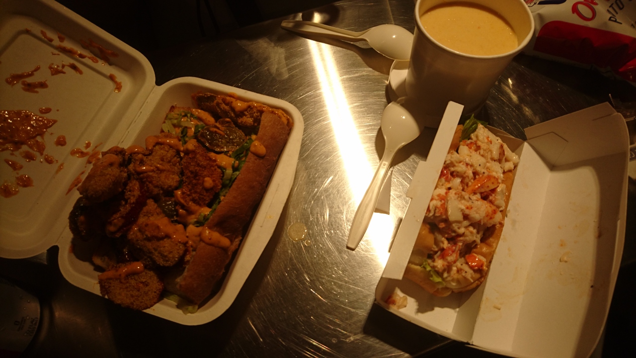 クラムチャウダーやロブスターロールなどアメリカの有名料理を食べることが出来るのは良いですが、立ち食いなので落ち着かないところや値段が高いのは少し残念です。