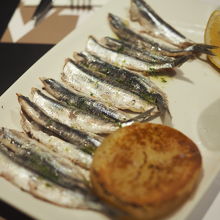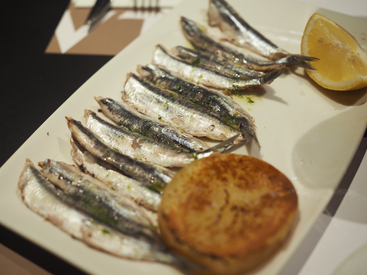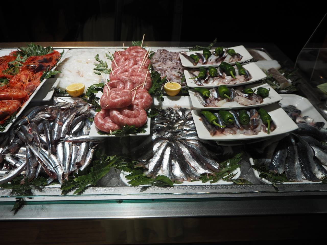 何を注文したらよいか迷っていたら店員さんがカウンターにあるショーケースまで連れて行ってくれました。その中から片口いわしとソーセージを選び、調理していただきました。そのほかはオレンジとウォルナッツのサラダとラムを注文しました。どれも日本人の口に合い美味しかったです。サングリアも美味しかったのですが、グラスで注文できなかったので量がとても多く大変でした。