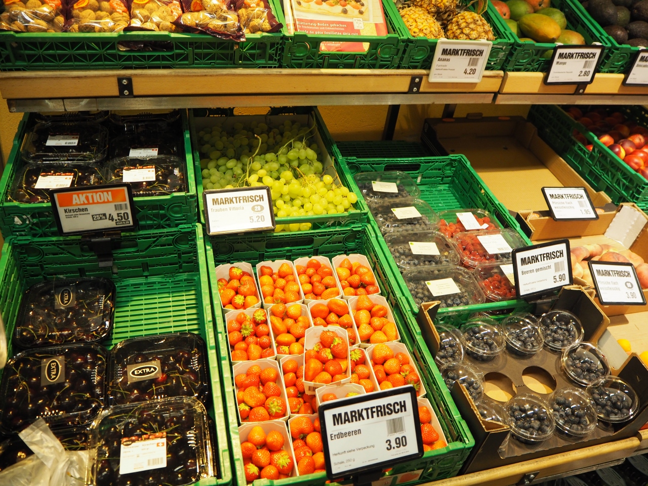 グリンデルワルト駅近くにあるスーパーです。お水など安く調達できます。閉店時間は早めです。まだ明るい夜8時頃には閉まっていました。こちらに置いてあったいちごが色艶よく甘い香りが漂っていて思わず購入しました。とてもとても美味しく、お手頃な価格なのでおすすめです。ブルーベリーも美味しかったです。