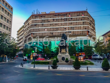 旧市街の中心部にある広場です。朝一番でアルハンブラに並ぶために、早朝ここからバスに乗りました。空もまだ少しくらい7時ごろでしたが、平日にもかかわらず広場には人は殆どいませんでした。中央に地味な感じの像が立っています。
