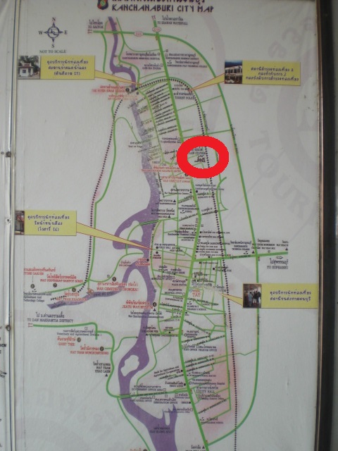 タイ国鉄のカンチャナブリ駅は、バスターミナルとクアイ川鉄橋の中間付近にあります。