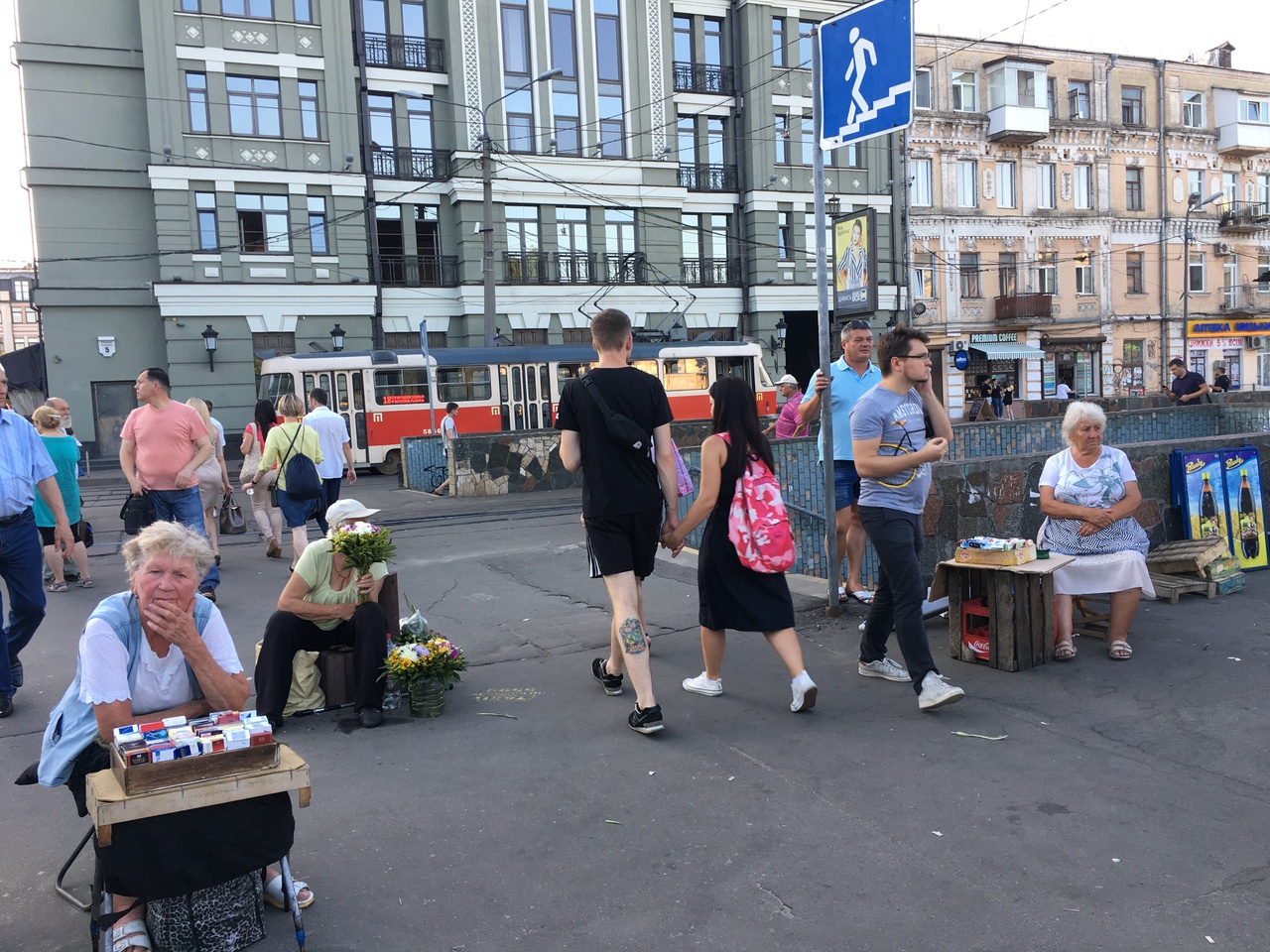 駅の周りはコントラクトヴァ広場を中心に賑わっており、駅前には大統領経営の有名チョコレート屋のロッシェンや品揃えの良い本屋、ちょっとした市場の立つ通りなどがあり、人の往来も多いです。チェルノブイリ博物館もこの駅が最寄駅になります。