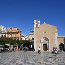 ウンベルト1世通りの中間あたり、4月9日広場に面して建つ教会です。すぐ向かいに建つサン・ジュゼッペ教会と比べても外観はさらにシンプルで、てっぺんに建つ十字架と左側にある鐘で教会らしく見えます。現在は図書館として使われているようです。