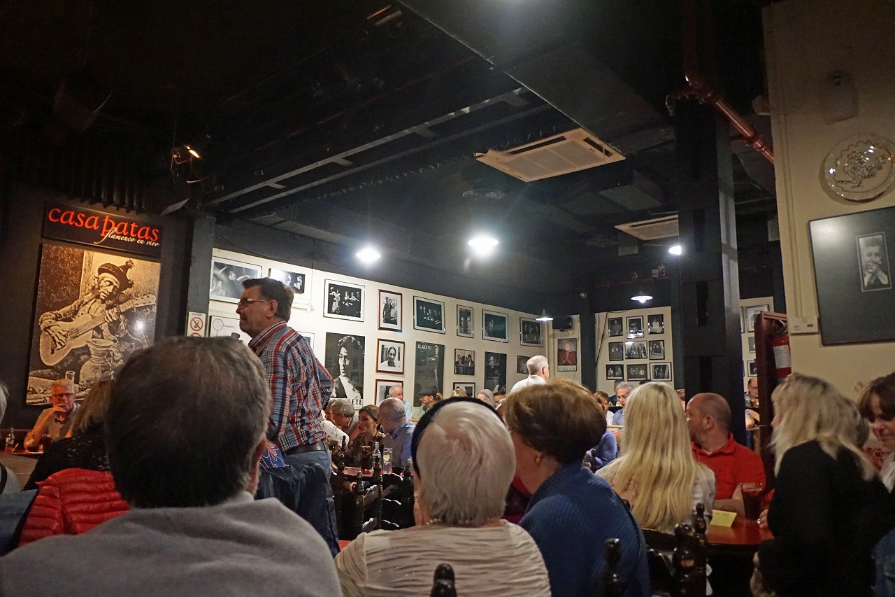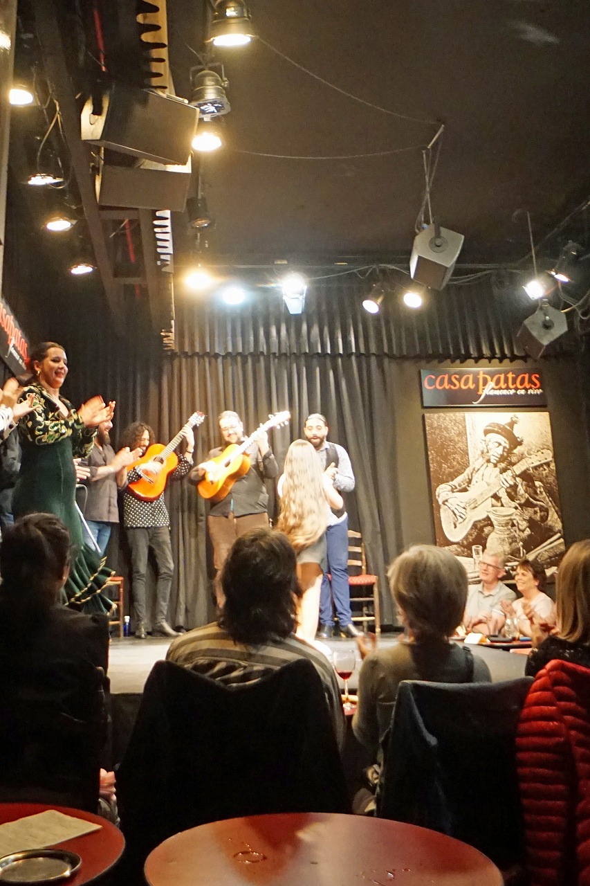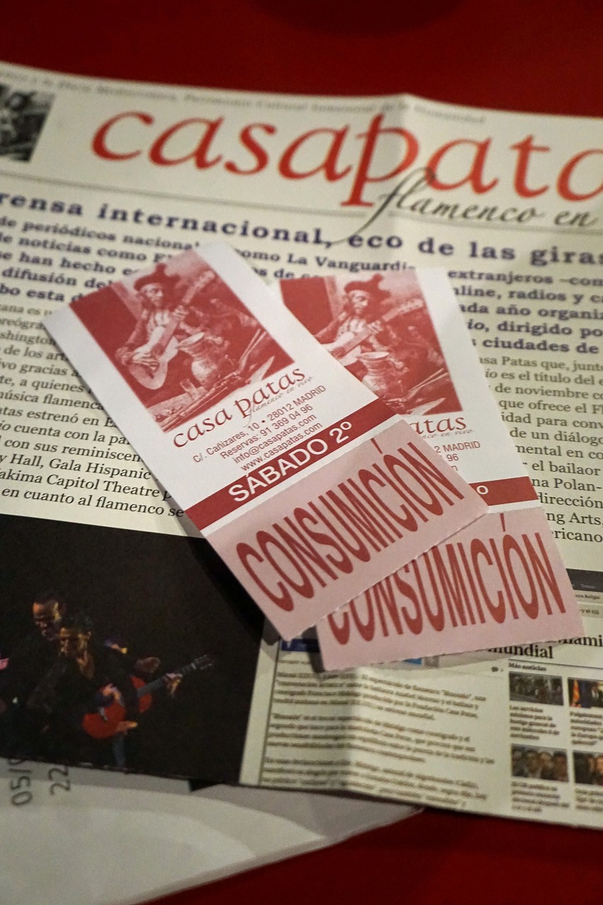 今回の旅行では初めにセビリアのロス・ガリョス、グラナダのアルバイシンの洞窟タブラオ、マドリッドでカフェ・デ・チニータスという王道の店でフラメンコを堪能しました。20年振りと15年振りの店ばかりで懐かしかったです。帰国前にもう一か所と思い、予約しておいたのがこのカサ・パタスです。ニューヨーク・タイムズ誌の「死ぬまでに観たい1000の場所」で紹介されているというのも選んだきっかけになりました。行った日は満席だったので早めに日本から予約しておいて良かったです。出演者を紹介しているパンフレットもあるので、演者で日にちを決めて来ている人も多かったようです。1ドリンク付きで予約してありましたが、ミックスナッツもついていました。やはり有名な店だけあって、踊っている人の技術は素晴らしく、女性の踊りではこの店が一番すごかったです。さらに若くて美人だったので引き込まれました。写真とビデオは禁止なのでご注意を。