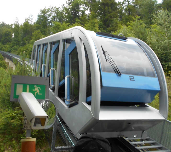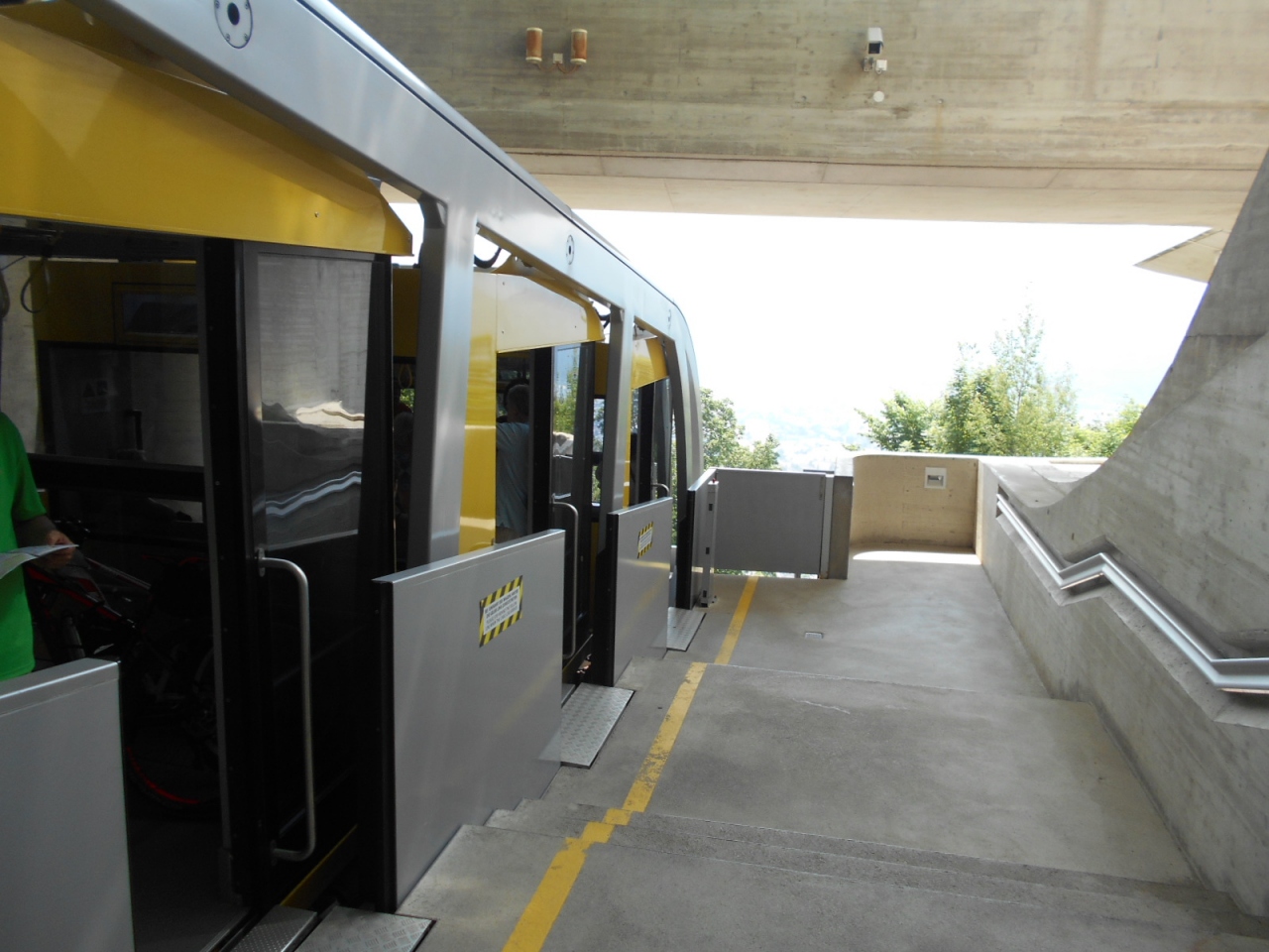 ハーフェレカー展望台ロープウェイ乗車駅に隣接する超現代的な終点駅兼展望台駅舎から、旧市街地王宮裏を急勾配で結ぶ。途中にアルペン動物園駅などあり。