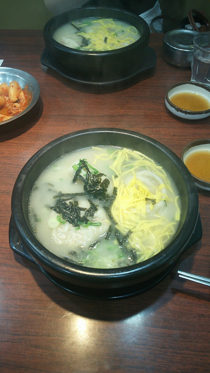 牛の出汁がしっかり効いたソルロンタンで、味は薄味ですので、自分で塩・胡椒をして
