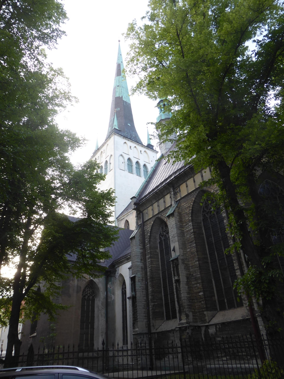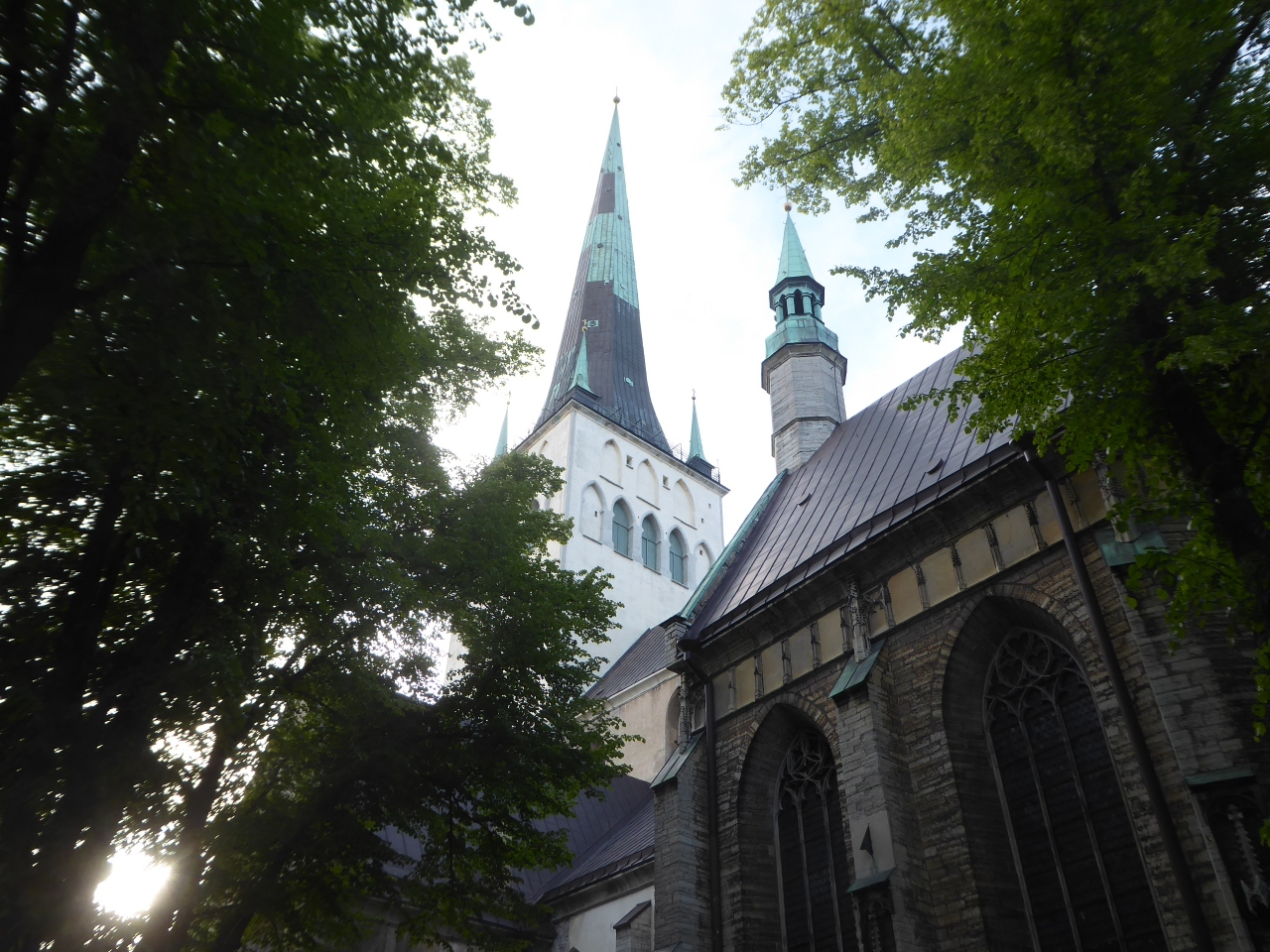 三人姉妹のすぐ近くに大きな教会がありました。聖オレフ教会で、高い塔があることで知られています。12世紀に建設された教会で、デンマークがタリンを支配する以前の様式が保存されています。この塔はタリンの町でも目立っていました。
