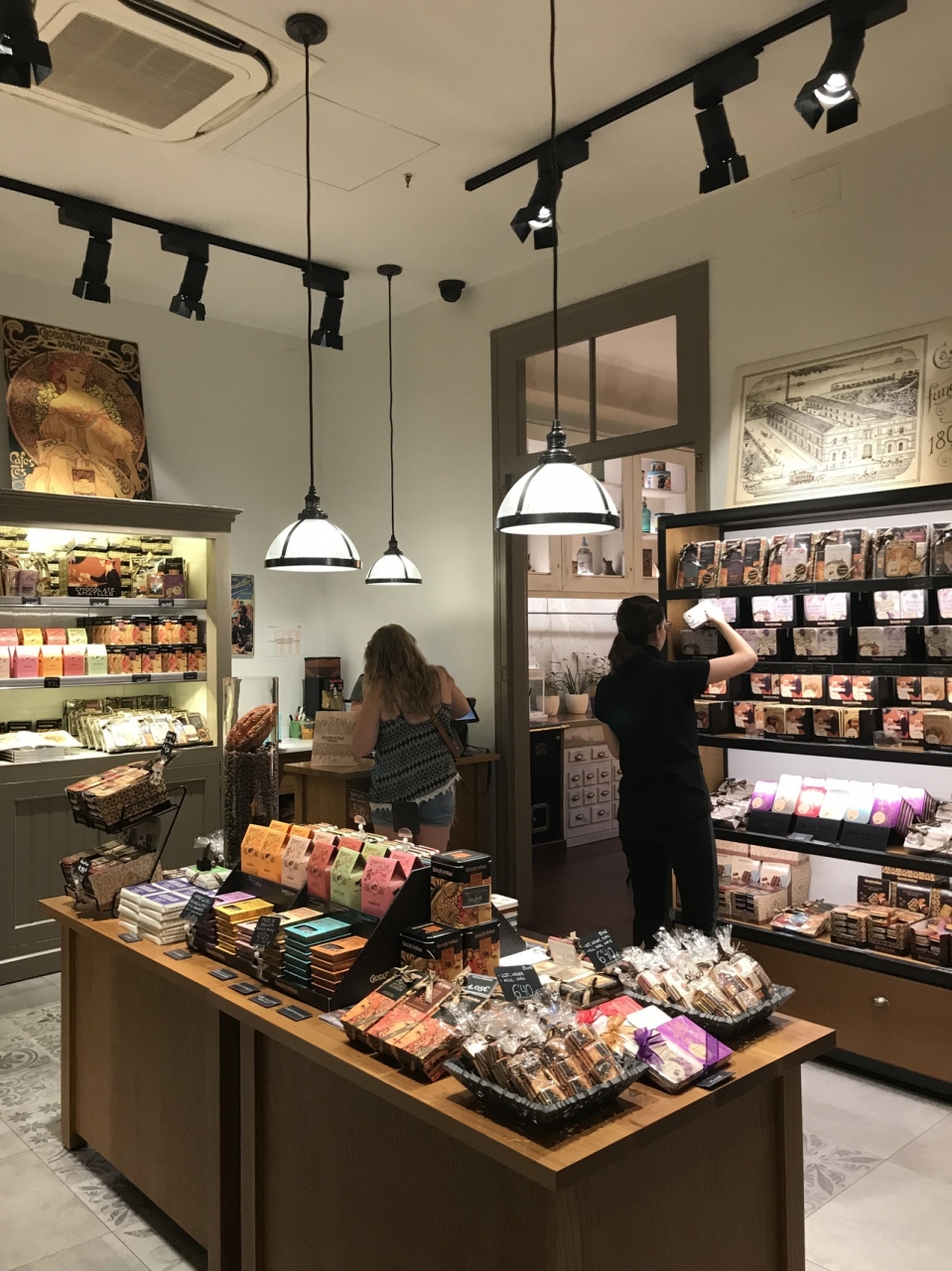 カサパトリョのすぐ隣にあるお家。チョコレートで財を成したご家族がデザインを頼んだのだとか。中を見学することもできますが、今回は外観と中のチョコレート屋さんでお買い物!ミュシャの絵を使った缶入りのチョコレートが手軽でお洒落。センスの良いお土産として喜ばれると思います。