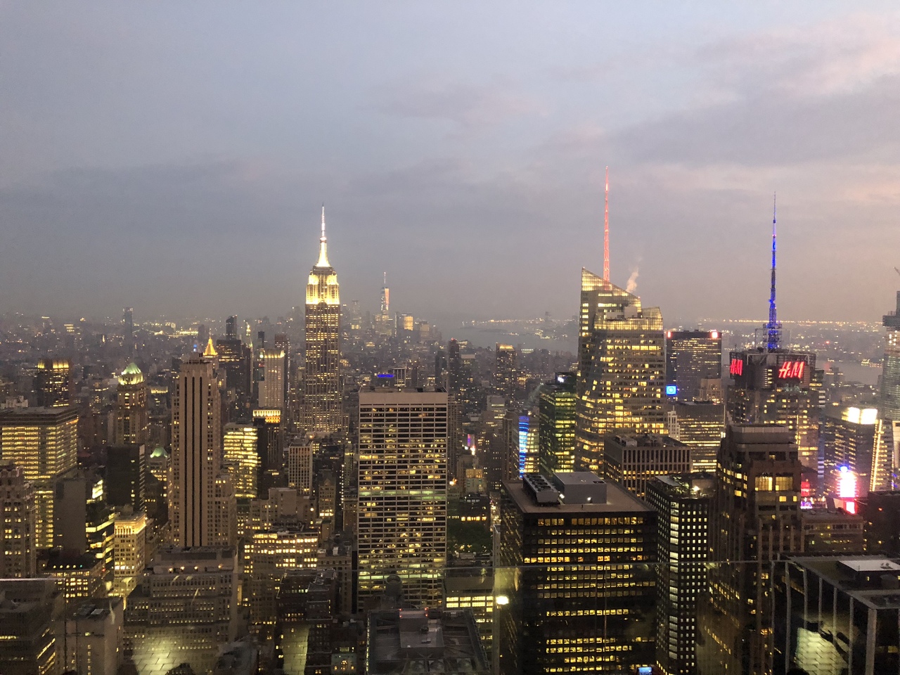こちらの展望台はニューヨークの夜景で1番な気がします。エンパイアステートビルも見えます。夕方から夜まで粘りましたが、夕方が1番混みます。夜景だけで、遅めの時間に行くのが空いているし、ベストだと思います。