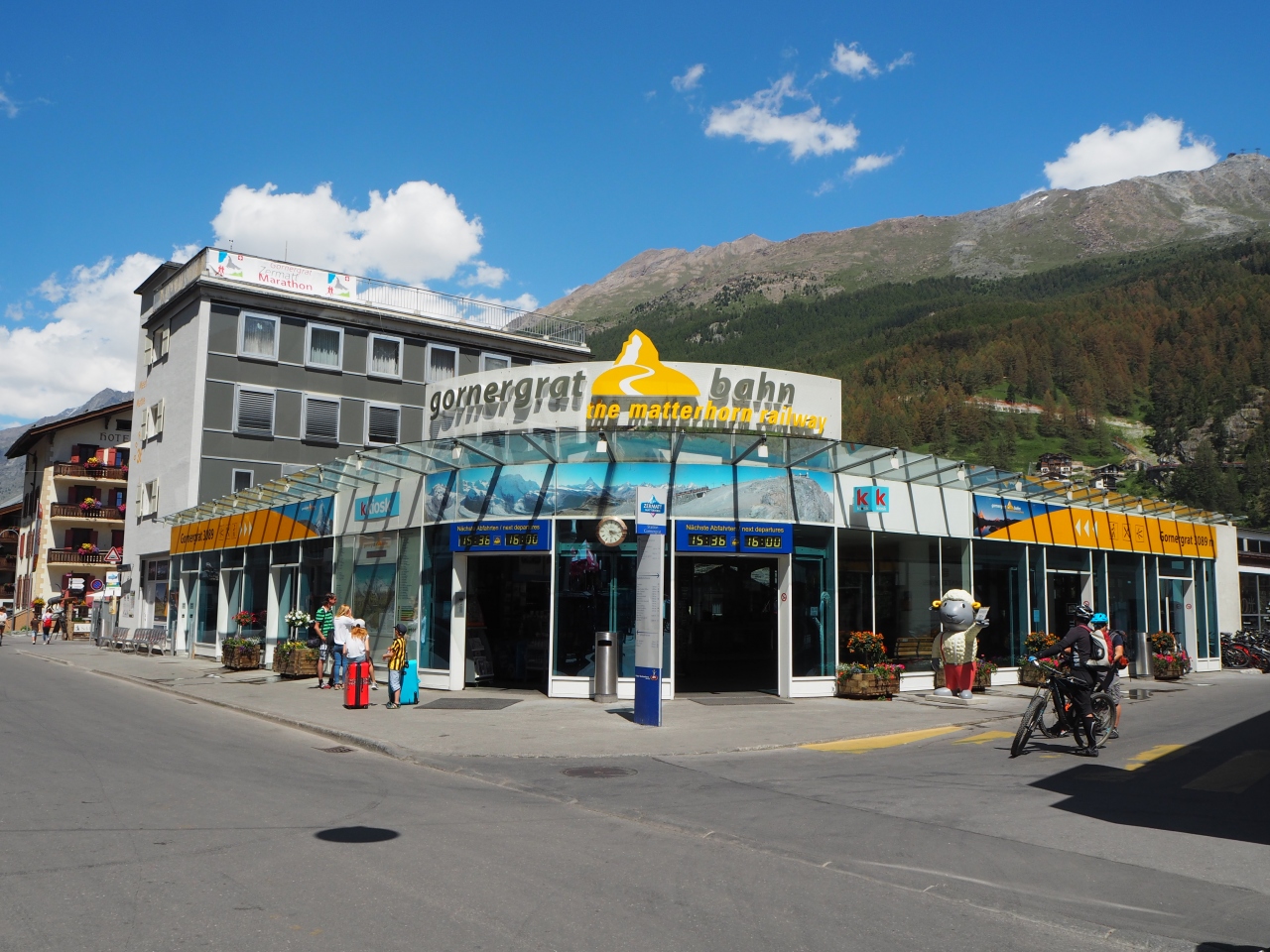 ゴルナーグラート鉄道駅はツェルマット国鉄駅を出て左の方へ2分程歩くとあります。ツェルマット駅からゴルナーグラート駅の往復で利用しました。ハーフフェアカードで50%オフになり、往復は一人57フランでした。ツェルマット出発の場合、進行方向に向かって右側に座るとマッターホルンが見えます。晴れていたのでとてもきれいな景色でした。カードはIC型で改札でチケットをかざすと自動で開閉します。スーツケースがあると一度に出れず、スーツケースだけ通過してしまい、駅員さんに事情を話あけていただきました。注意が必要です。ハイキングで途中駅からゴルナーグラートまでも一度利用しましたが、ICチケットではありませんでした。その場合も駅員さんに話改札を開けていただく必要があります。