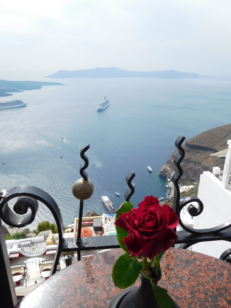 コスタデリチョーザのクルーズ船で寄港しました。エクスカーション(寄港地観光)でイア村を訪れた後、フィラに寄りました。イア村も絶景ですが、フィラもまた絶景です。フィラは中心街だけあってイア村よりさらに人も多く、お土産屋さんやレストランも多いです。