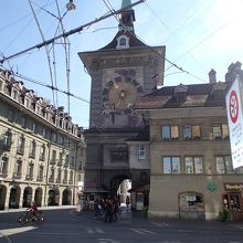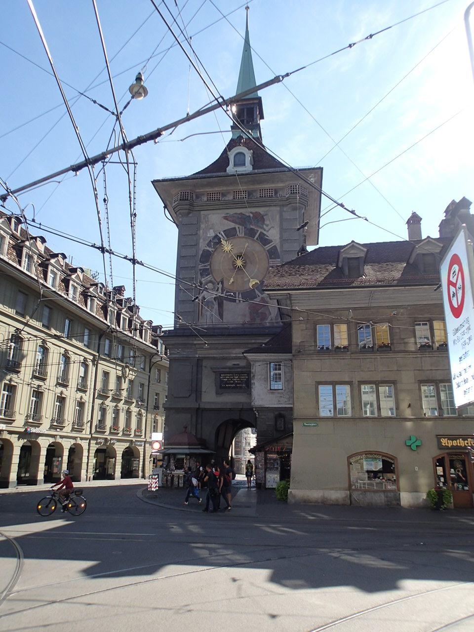 ベルン駅からクラム通りをしばらく歩くと見えてきますが、その方向から見えるのは時計塔の「裏側」です。一瞬「あれ?ガイドブックと違うな。これは別の塔?」と思ったのですが、時計塔の下をくぐって反対側から見ると、ガイドブックで見る時計塔の姿が見れました。