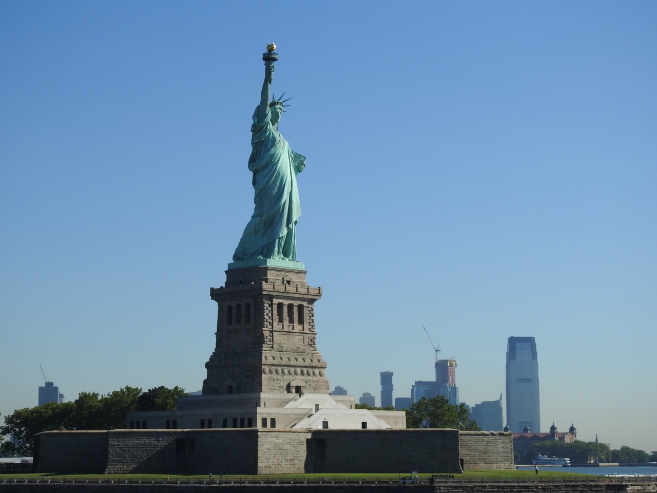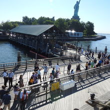 先に「Statue Cruises」のサイトで予約して平日午前8時チェックインのツアーに参加しました。私が予約したのは台座まで登れるチケットで、残念ながら王冠まで登れるチケットは取れませんでした。7時ごろ行ってみるとバッテリーパークのチケット売り場前にちらほらチケット販売を待つ人もいました。7時半にはチケット購入済みの観光客は{RESERVE」ののぼりが立つ場所に行くよう言われ、私もここで並び始めました。8時に荷物審査が始まり、終わった人から続々とフェリーに乗船していきます。今回は台座までのチケットでしたが台座の展望台からの眺めも良く、ゆっくり楽しめました。
