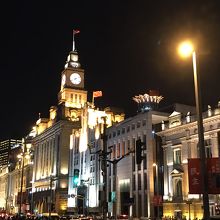 時計台が目印の建物で、外灘のシンボルとも言える建物だと思いました。ライトアップされた姿も、立ち並ぶ建物の中で、とりわけ幻想的でした。