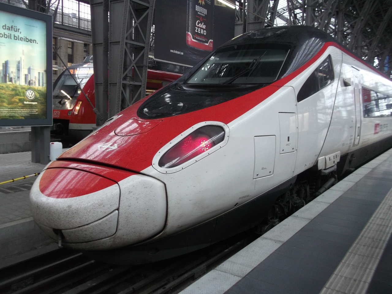 ミラノは北イタリアの中心都市の一つだけあって、スイス、ドイツを始め国境を越える特急列車がたくさん発着します。スイスを通過しドイツのフランクフルトへ向かう特急列車に乗車しましたが、車内も快適で日本では味わえない列車での国境越えを体験できました。