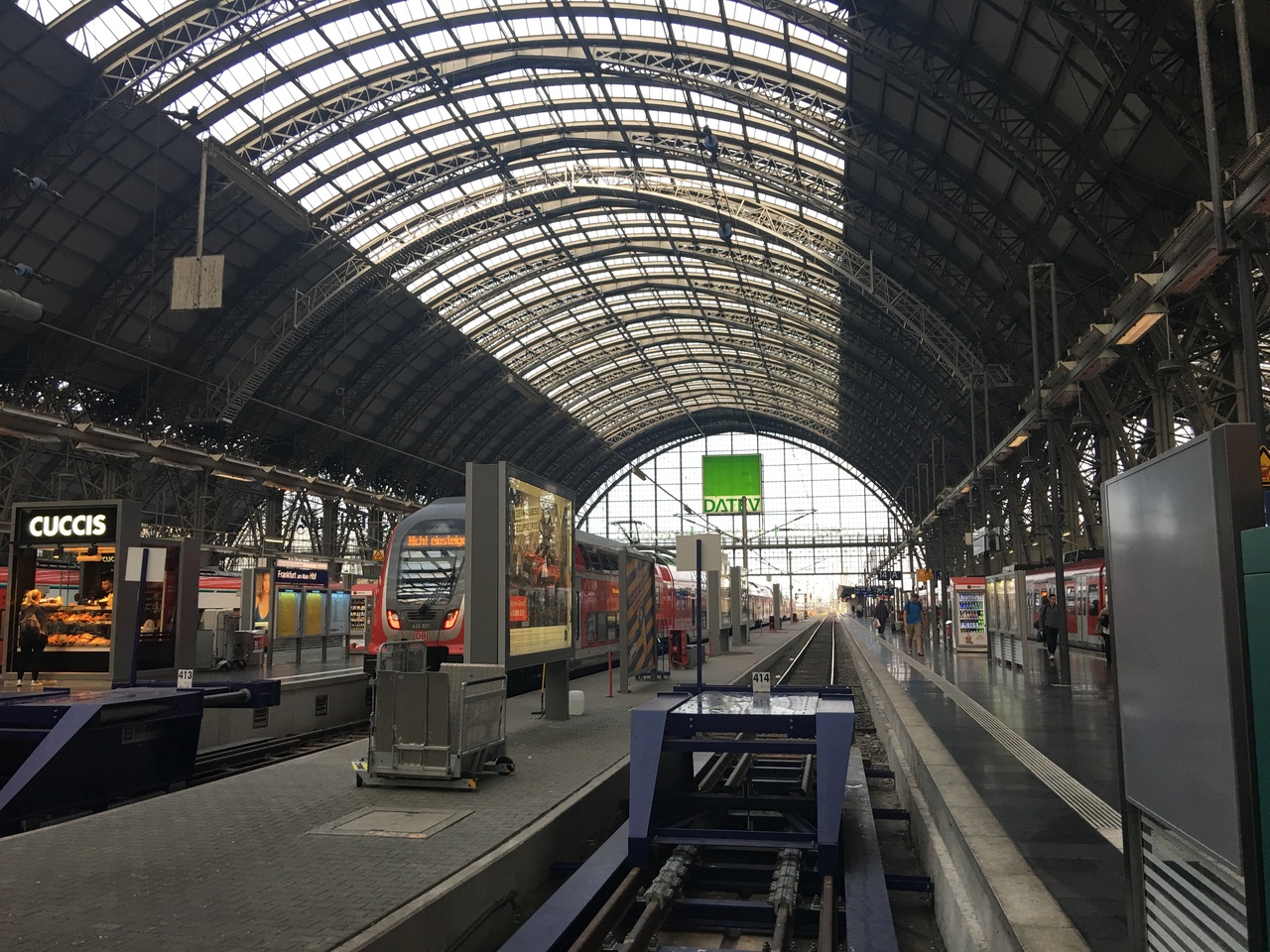 ハイデルベルクへ行く時と、ストラスブールからの到着時に利用しました。売店や飲食店も充実しています。コインロッカーも分かりやすい場所にたくさんあり、有人の預かり所も側にありました。フランクフルト国際空港までも15分足らず、本当に便利な駅です。