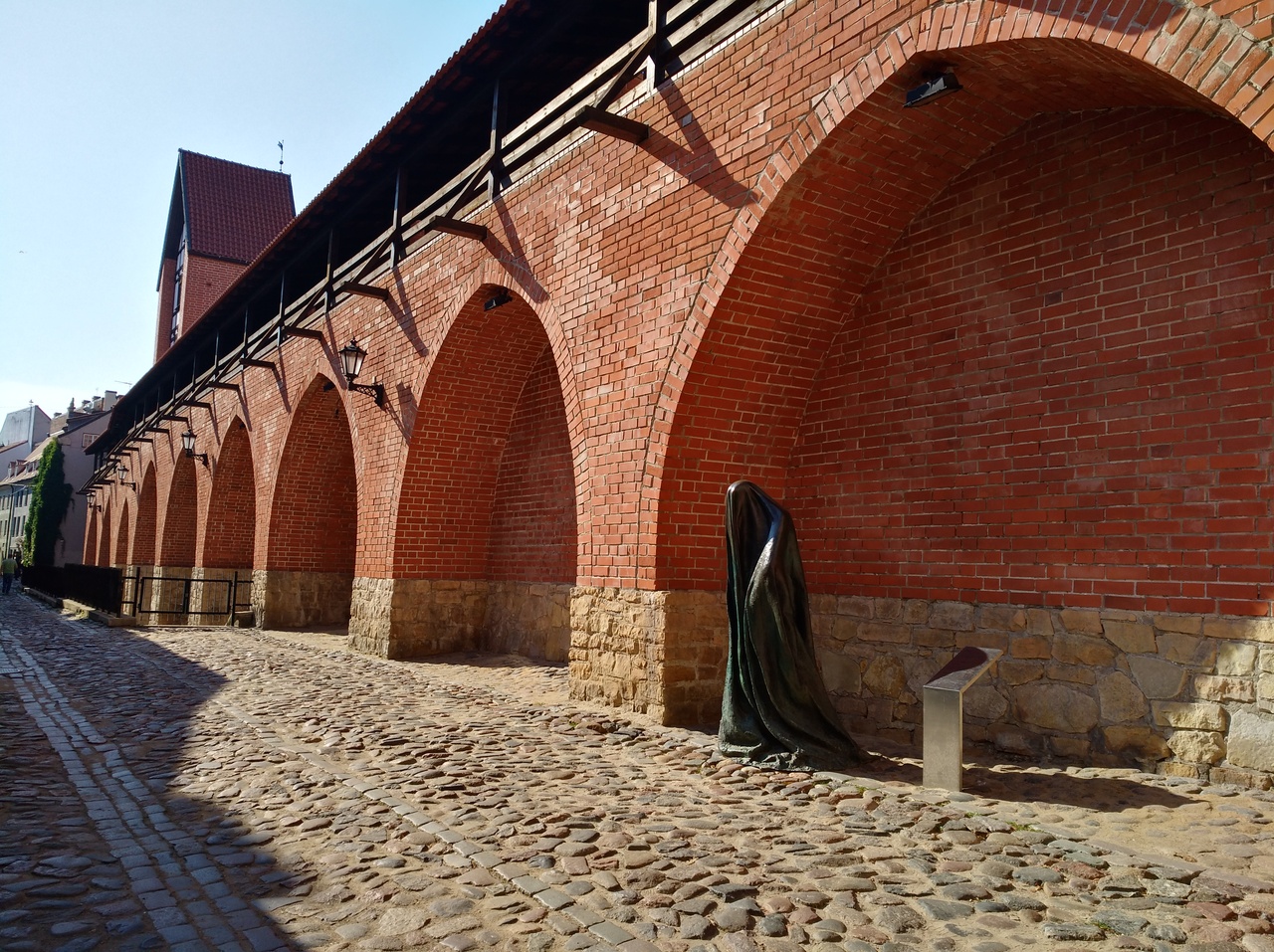 リガの城壁はエストニアのタリンとは違い、一部しか残っていないそうです。城壁があると雰囲気がぐっと良くなるので少しも残念です。ただ城壁がもっと残っていたらいたで、今のリガの旧市街の姿はなかったと思うので、これで良かったのかも知れません。城壁の前に変なゴーストのモニュメント?がありました。