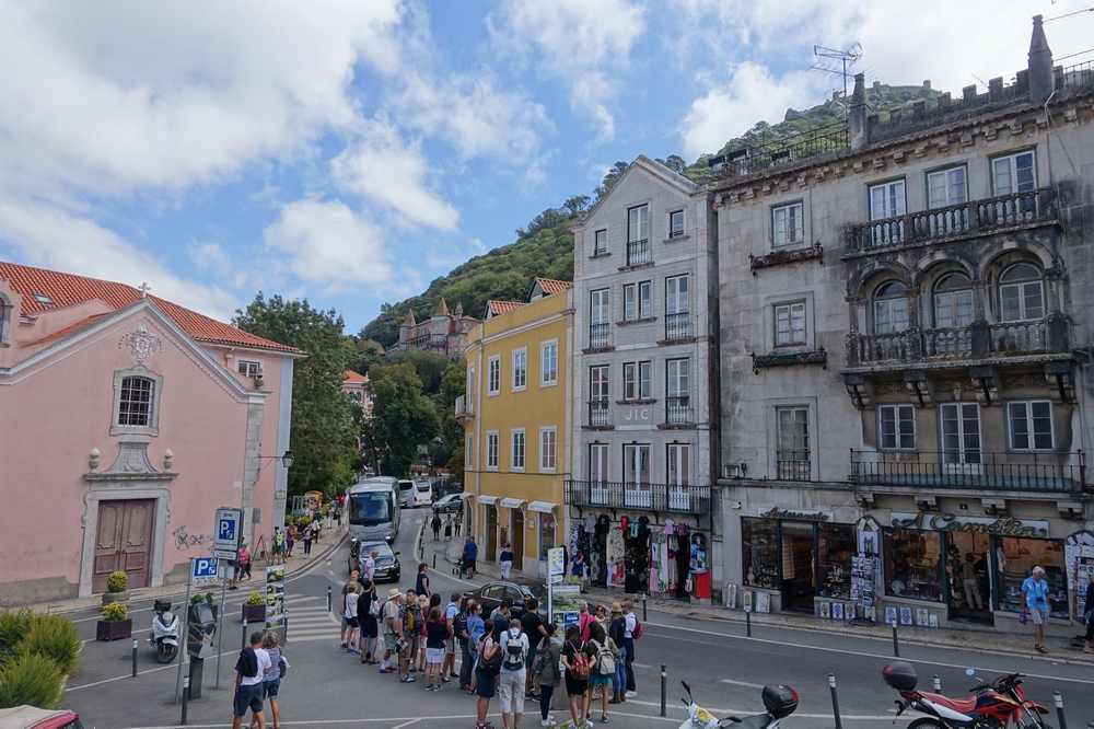 シントラ駅からバスに乗ると1つ目のバス停が王宮(レプブリカ広場)になりますが、434番の循環バスは非常に混んでいます。いきなりここでバスを降りてしまうと再度ここから乗ろうと思っても満員だと乗れない可能性も。なので、行きは一気にペーナ宮殿やムーアの城跡に行って、帰りにレプブリカ広場でバスを降り、食事や休憩をする流れのほうがいい気がします。