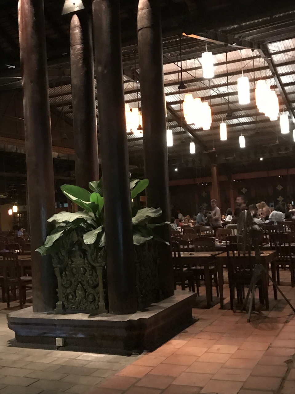 カンボジアの音楽が流れる中でアプサラダンスを見ながら食事ができる観光客用巨大ブッフェレストランです。