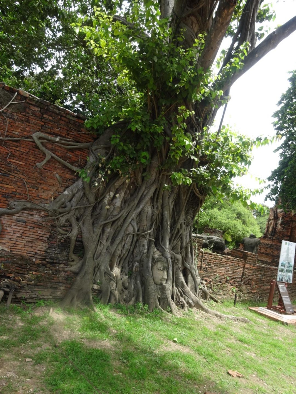 木の、根っこと呼べばいいのか分からないですけど、顔を覆っている部分が成長するのでお顔がちょっとずつあがってきているようです。あがっているのもそうかもしれないですけど数年前に比べて少し埋もれてお顔が見えづらくなっているように感じました。