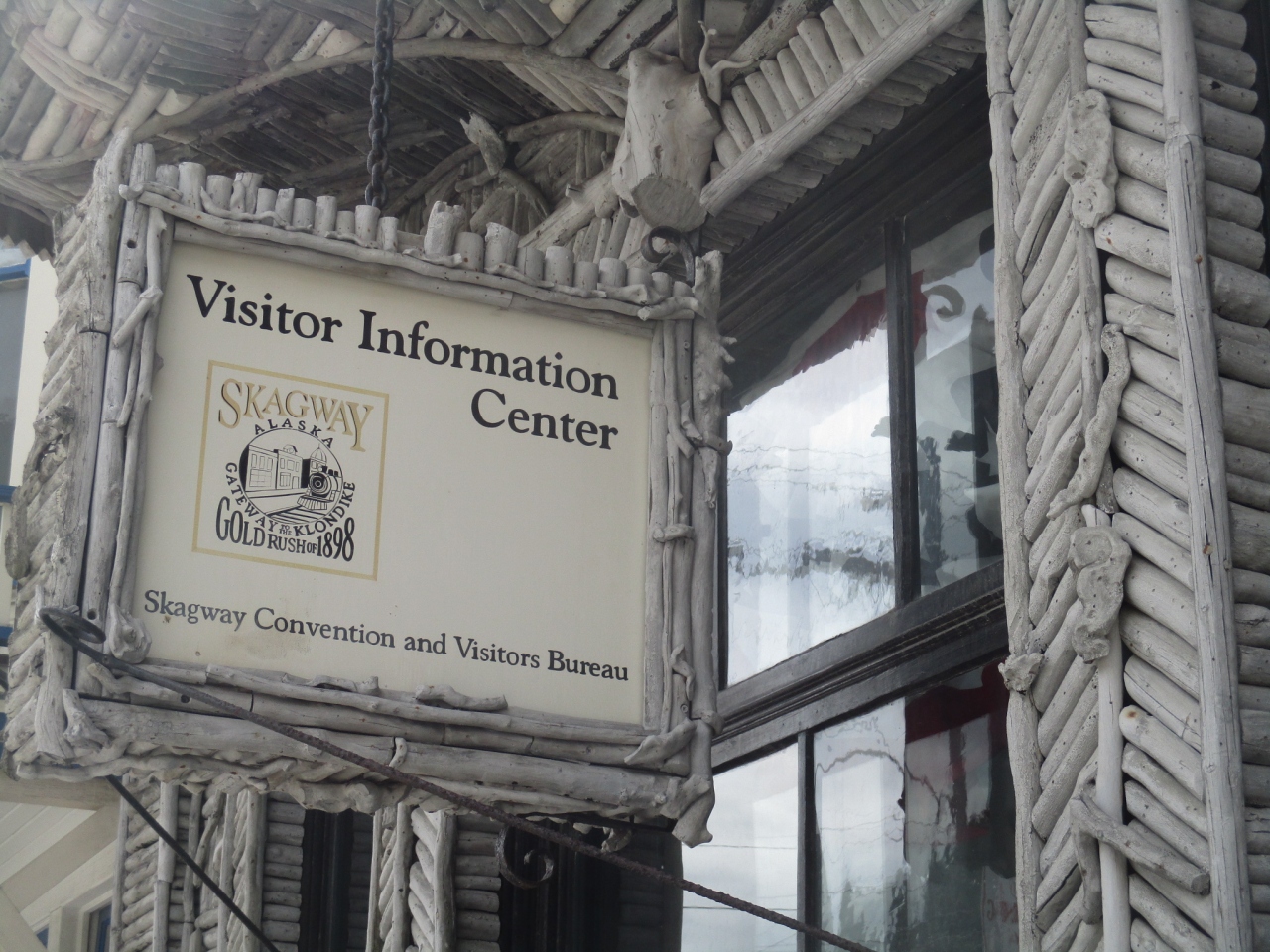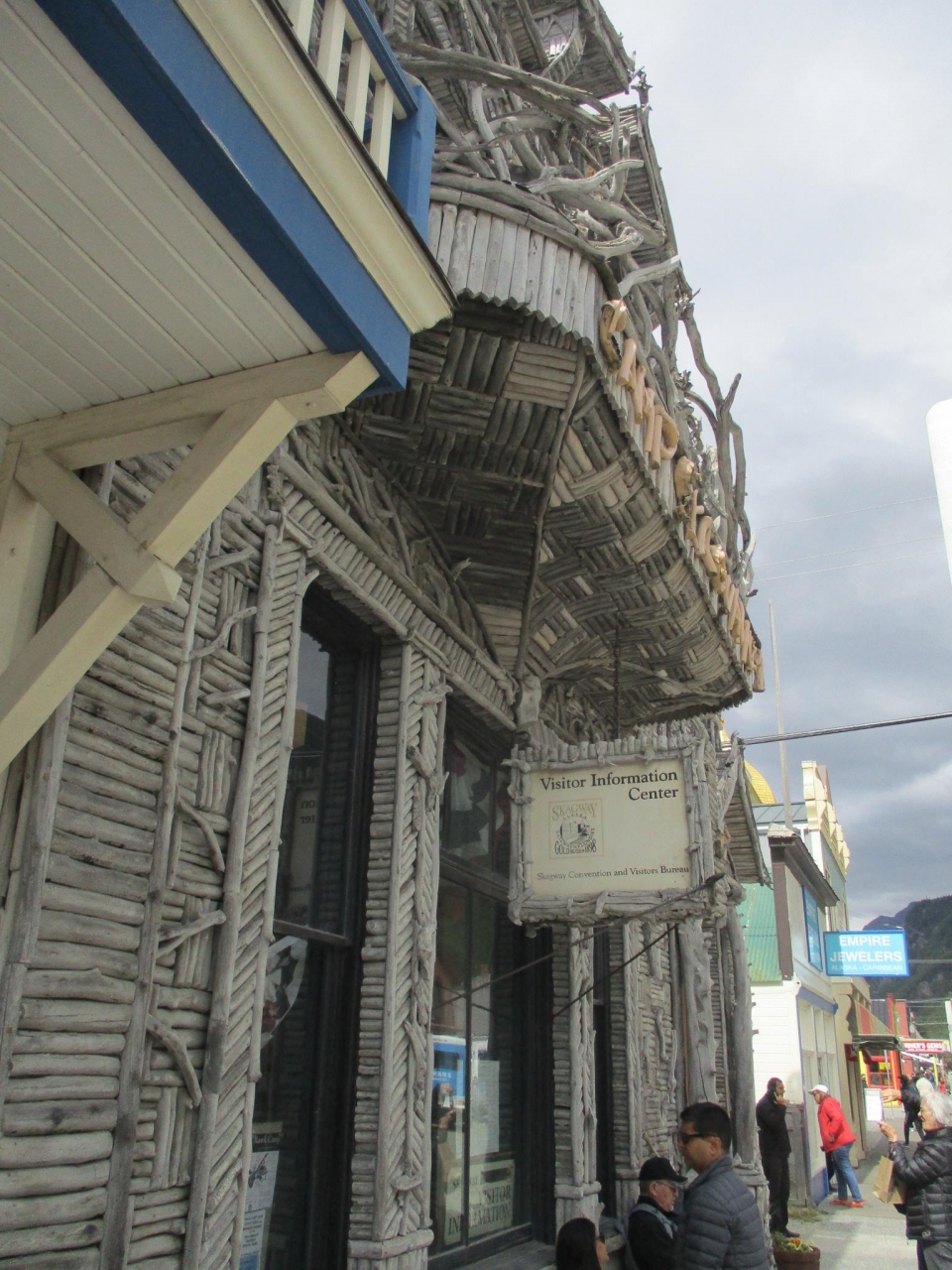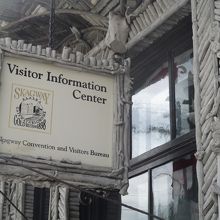 スキャグウェイの観光案内所は、町の大通り沿いにある2万本もの流木で飾られた外観がユニークなアークティック・ブラザーフッド・ホールという歴史的建造物の中にありました。