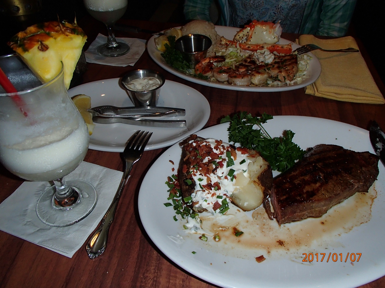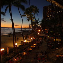 アウトリガーワイキキビーチリゾートの2階にあります。サンセットの時間に行ったら運良くビーチサイドの席に案内されました。サンセットを見ながらいただくカクテル・ステーキは最高です。場所もワイキキの中心地なので、一度は訪れたいレストランです。