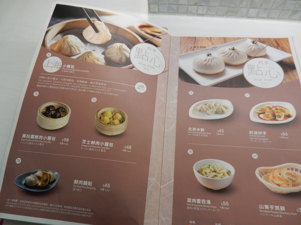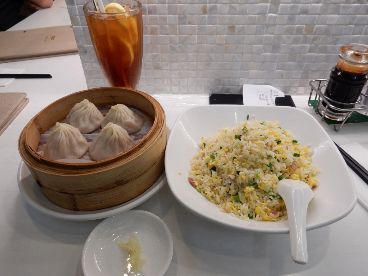 市内にもお店がある有名なチェーンで、お値段も高いのかなと思いきや、鼎泰豊と比べても安いぐらいの価格。小籠包は4個で40ドル、チャーハンで90ドル、飲み物はノンアルコール(アイスティー)で24ドルでした。