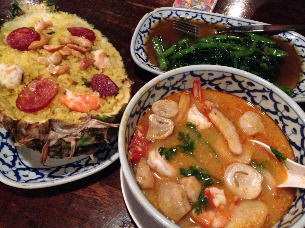 お店の雰囲気も良く、ひと通りのタイ料理メニューもあり、写真つきのメニューがとても見やすくて観光客向け。ただ価格も観光客向けで高めだと思います。21時近くに行ったところ、もうすでに売り切れだと言われてしまった料理がいくつかあり残念でしたが、トムヤムクン、パイナップル炒飯などなんでも美味しかったです。