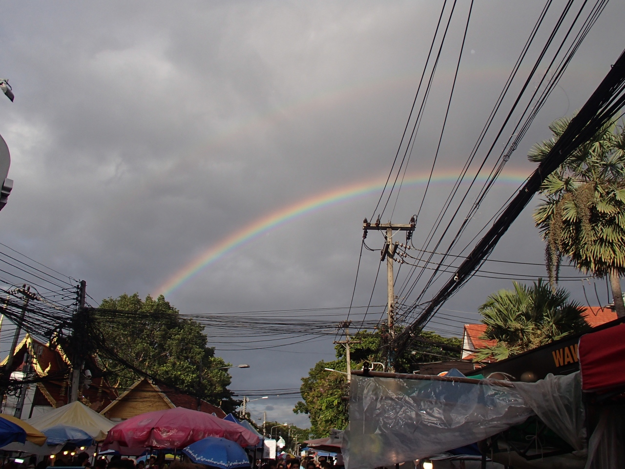 行った日は、夕方雨が降ってきて、どうなる物かと思いマスタが、市場が開催される頃は雨は上がり、綺麗な虹が出ていました。