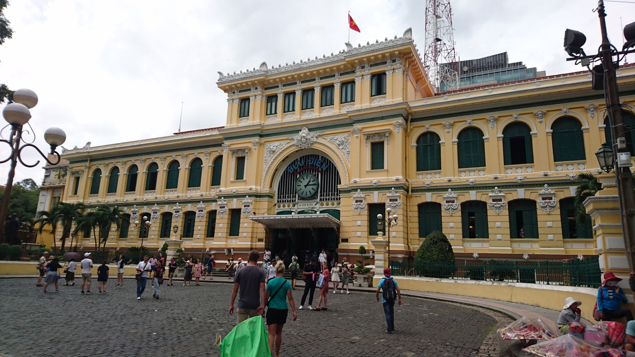 ホーチミンにあるサイゴン中央郵便局。サイゴン大教会と道路向かいにあるので観光に行くならセットで生けるのでいいですね。モダンな建物の中はたくさんのお土産屋さんが入ってます。ベトナムの切手や葉書を眺めるのも楽しいです。本来の郵便局の業務は端の方でひっそり業務していました。