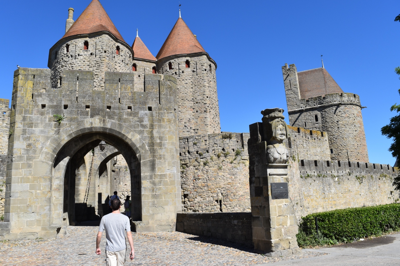 レンタカーで、ナルボンヌ門近くの駐車場まで行きましたが、そこはもちろん駐車料金が時間に応じてとられる方式で、結構高かったです。駐車場からナルボンヌ門まではすぐですので、便利ですが、このルートでカルカソンヌ城塞へ入ると、普段絵葉書などで見られる雄大な風景を目にすることができなかったため残念でした。