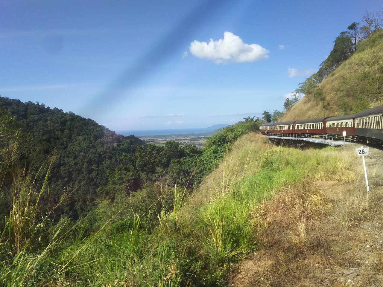 ケアンズ観光旅行の際に、キュランダ観光列車に乗車しました。いろいろな見どころで減速してくれて、ゆっくり写真撮影できるような観光列車です。時間はけっこう使いますが乗る価値あります。また、道中に滝等ありますが一番美しいのは自分が乗ってる列車をカーブで見ることです。