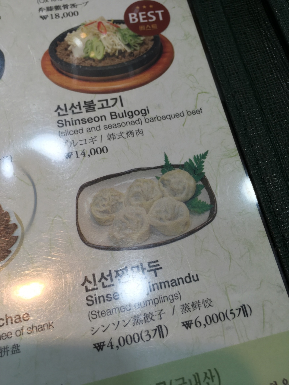 ソルロンタンとマンドゥ5個を注文すると、すぐに運ばれてきました。ソルロンタンはとても優しい味で、塩やキムチを足して食べました。味は期待しすぎてしまっていたため、感動する程ではなかったです。