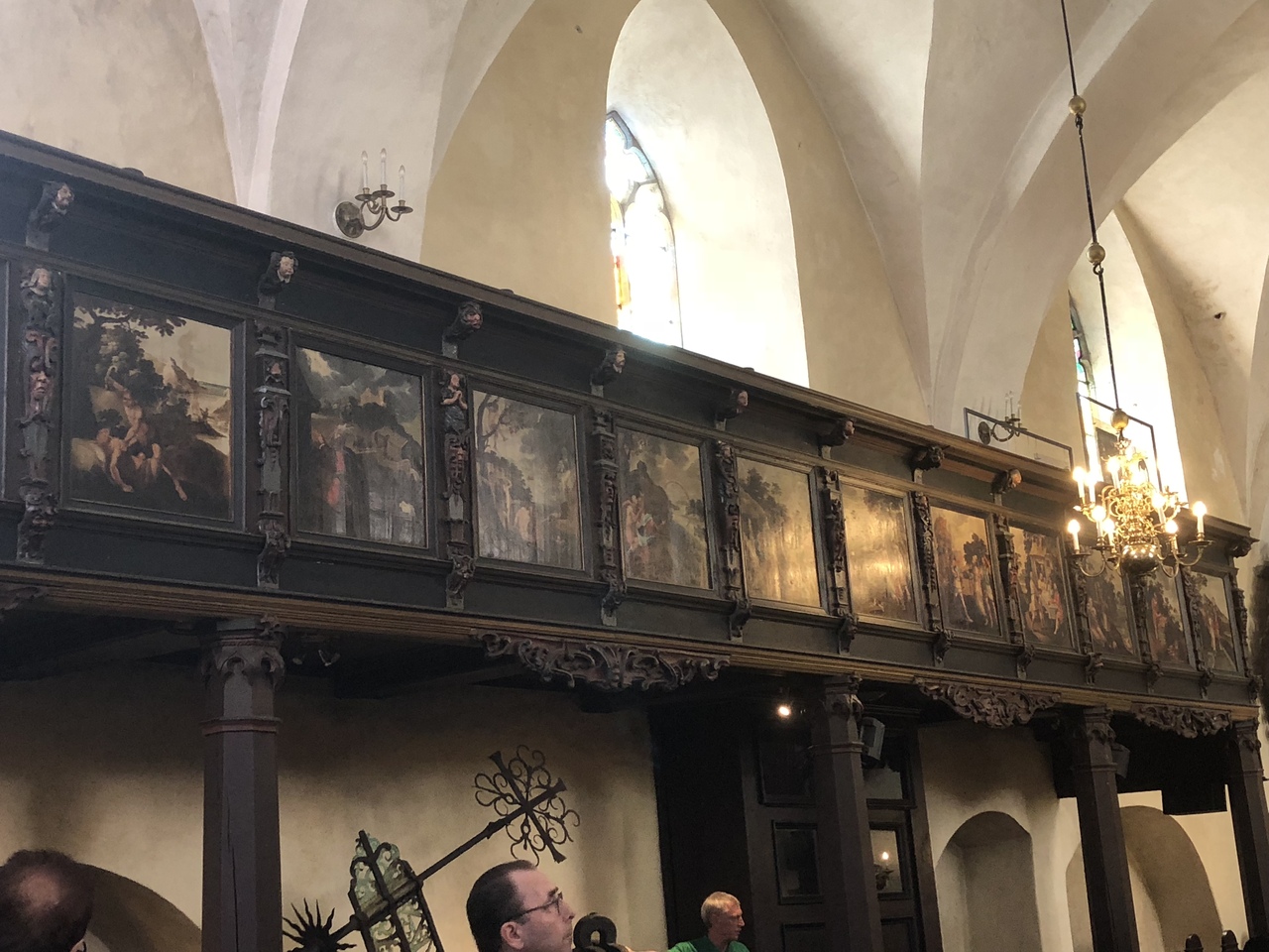 ラエコヤ広場の近くにある教会です。外観は白い建物です。教会内 に入るには、入場料が必要です。教会内には、木の階段を上ると、木造のテラスのような場所があり、テラスには、キリスト教と関係のある宗教画が描かれていました。