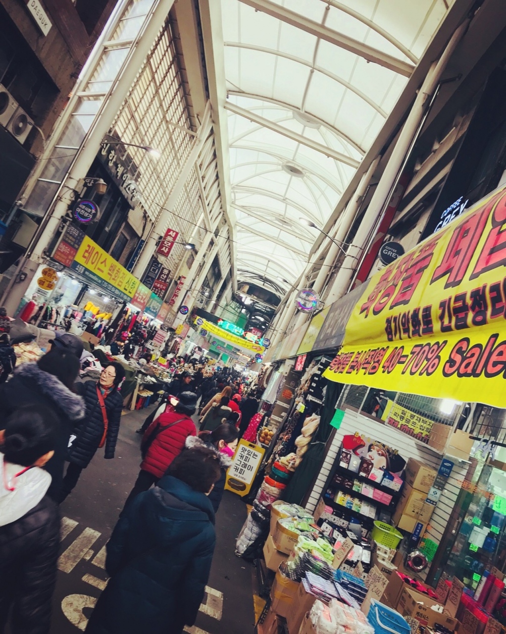 この市場は、広蔵市場と東大門市場が一ヶ所に集まったようなところで、ファッションを取り扱うビルではマノン(1万ウォン)の服を買ってきました!