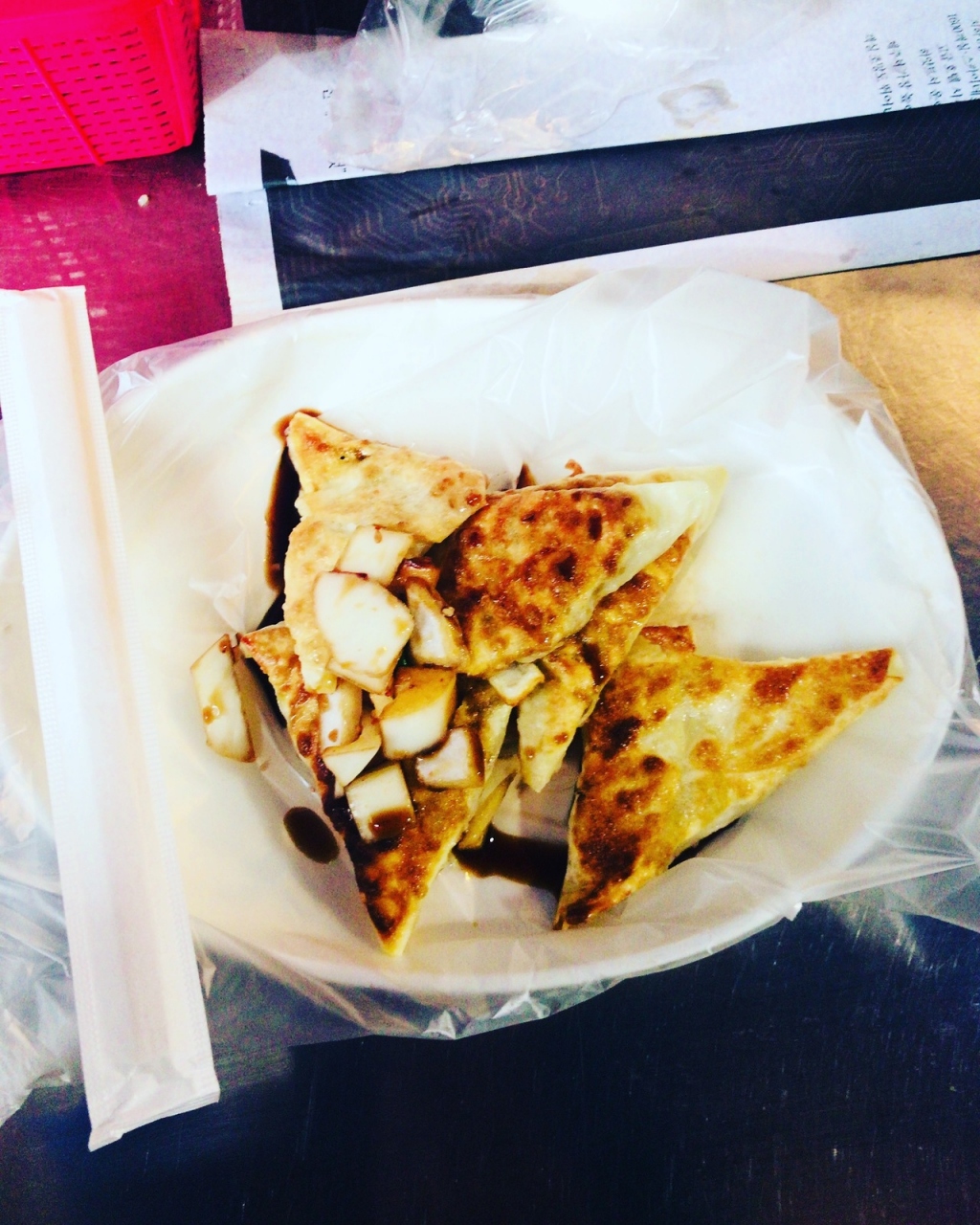 地元の皆さんは、屋台でカルグクスをおいしそうに食べてましたが、私は西門名物のぺちゃんこ餃子を食べてみました。