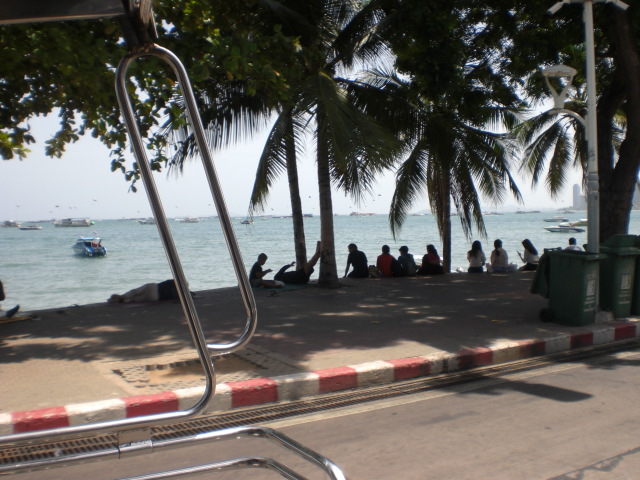 海岸での日光浴をする人、沖合でマリンスポーツに興じる人、海岸道を歩いたり走ったりする人、人それぞれの楽しみ方があるパタヤビーチです。