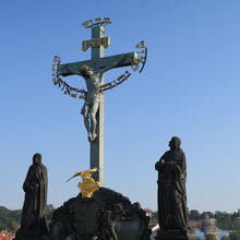 十字架に架けられたキリスト像で、カレル橋の東側(旧市街がある方向)にあります。