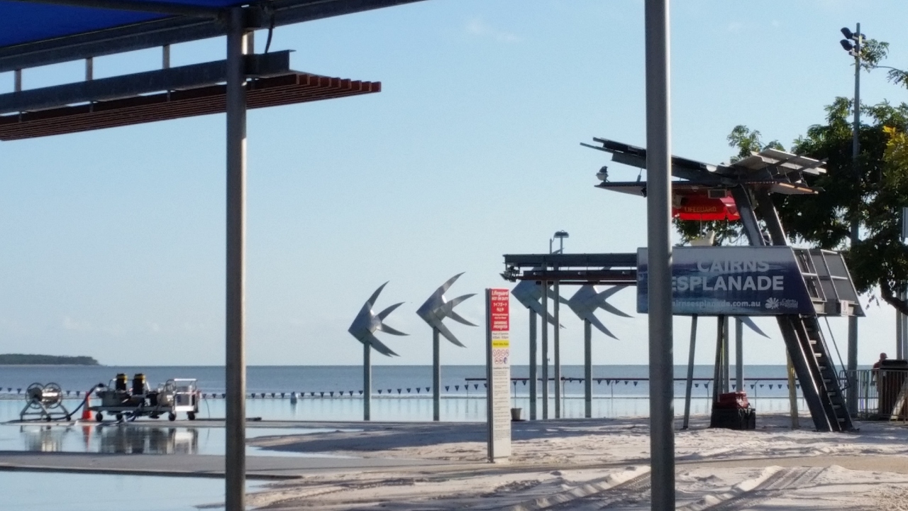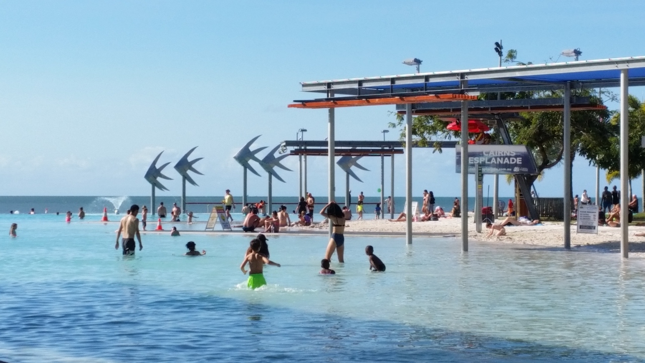 エスプラネード沿いにある広さ4haの人工の無料プールです。周囲には芝生があり、無料のバーベキュー場もあります。金曜は工事中で柵が張り巡らされ、土曜には柵が撤去、日曜午後にはオープンし、大勢の人たちが楽しんでいました。水を触ってみましたが冷たかったです。