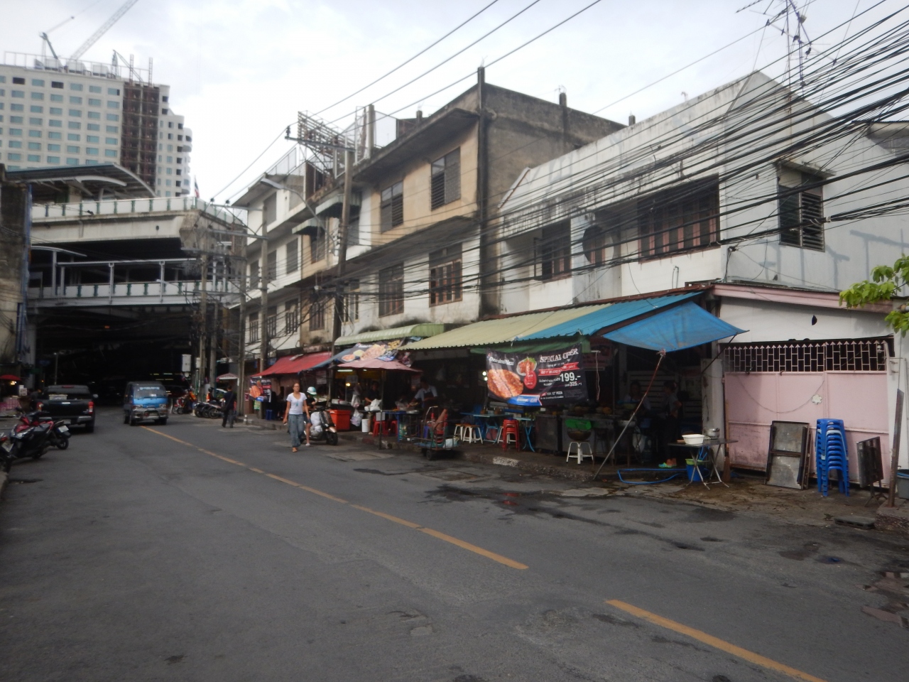 スクンビットソイ38に屋台街は店が半減した。ソイ38で営業している店は数えるほどだが、それも時間が早かったため、さらに少なかった。トンロー駅近くのフードコートはがらんとしていて駐車場と見間違えるほどだった。