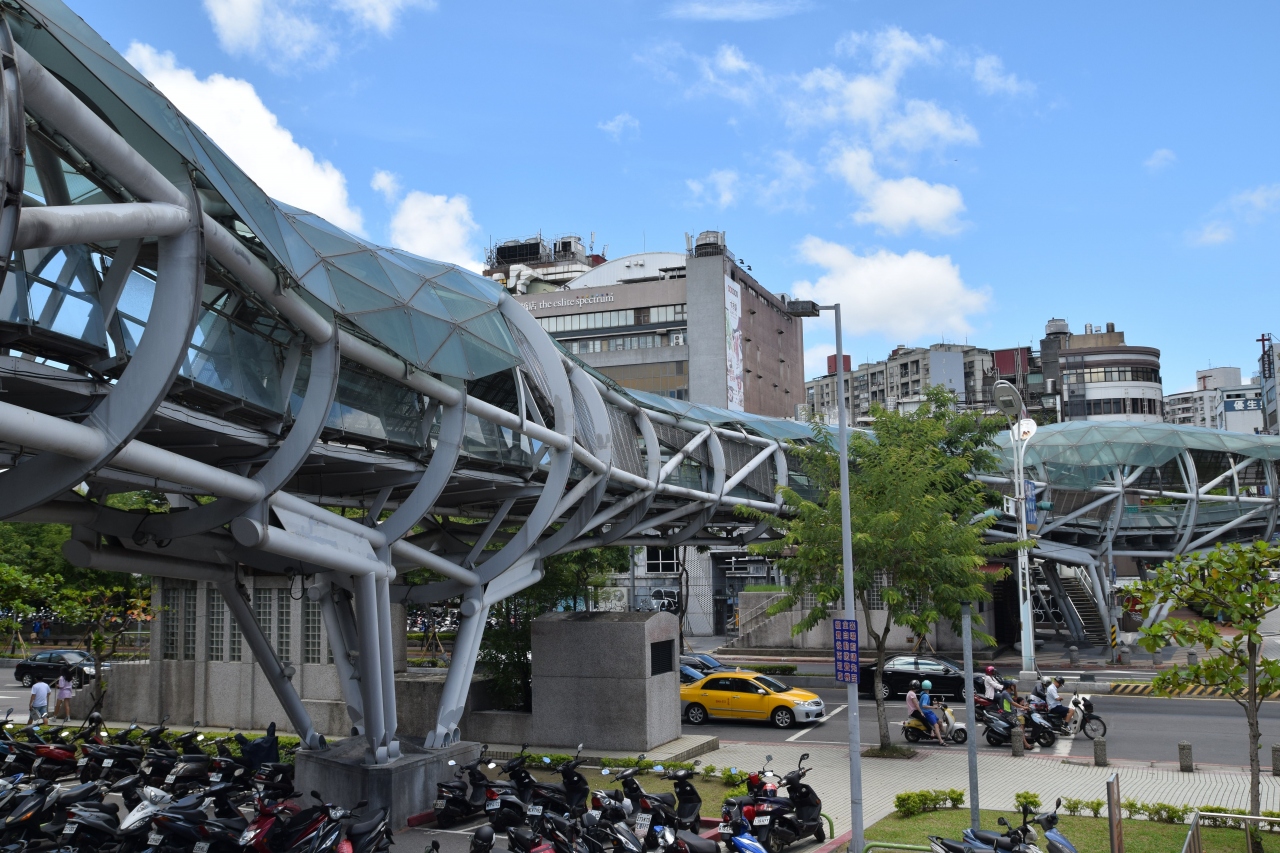 長い陸橋でゴツゴツした独特のデザイン、レトロフューチャーな感じです。