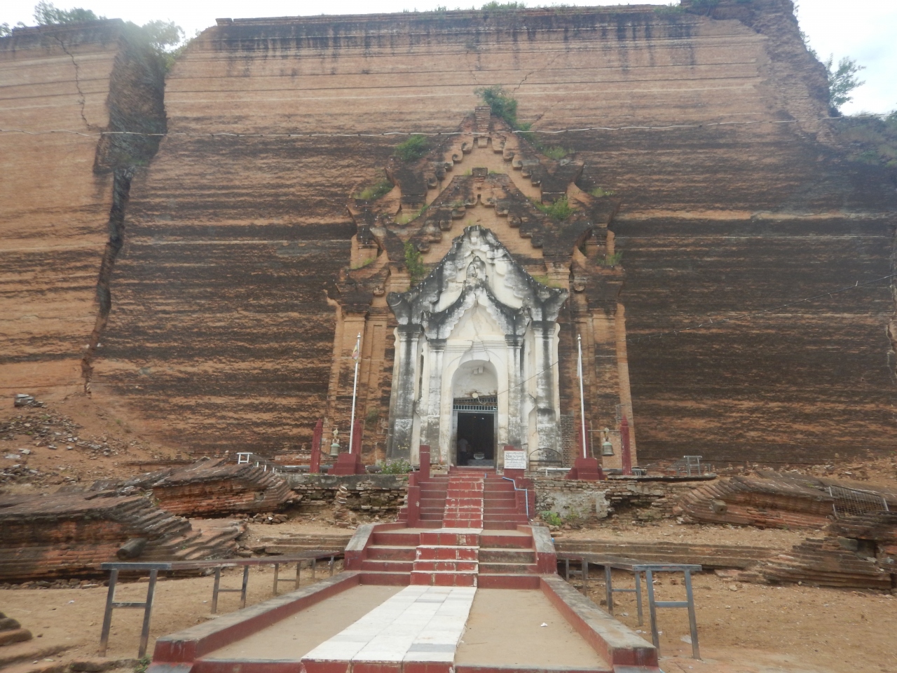 マンダレーの船着き場からミングォンまで1日1往復船が出ている。朝9時発。帰りの午後1時頃出る。船代5000チャット。ミングォン入域料5000チャットだ。船を降りてパゴタや鐘を見て歩く。途中牛車もあるが、乗り心地は悪い。