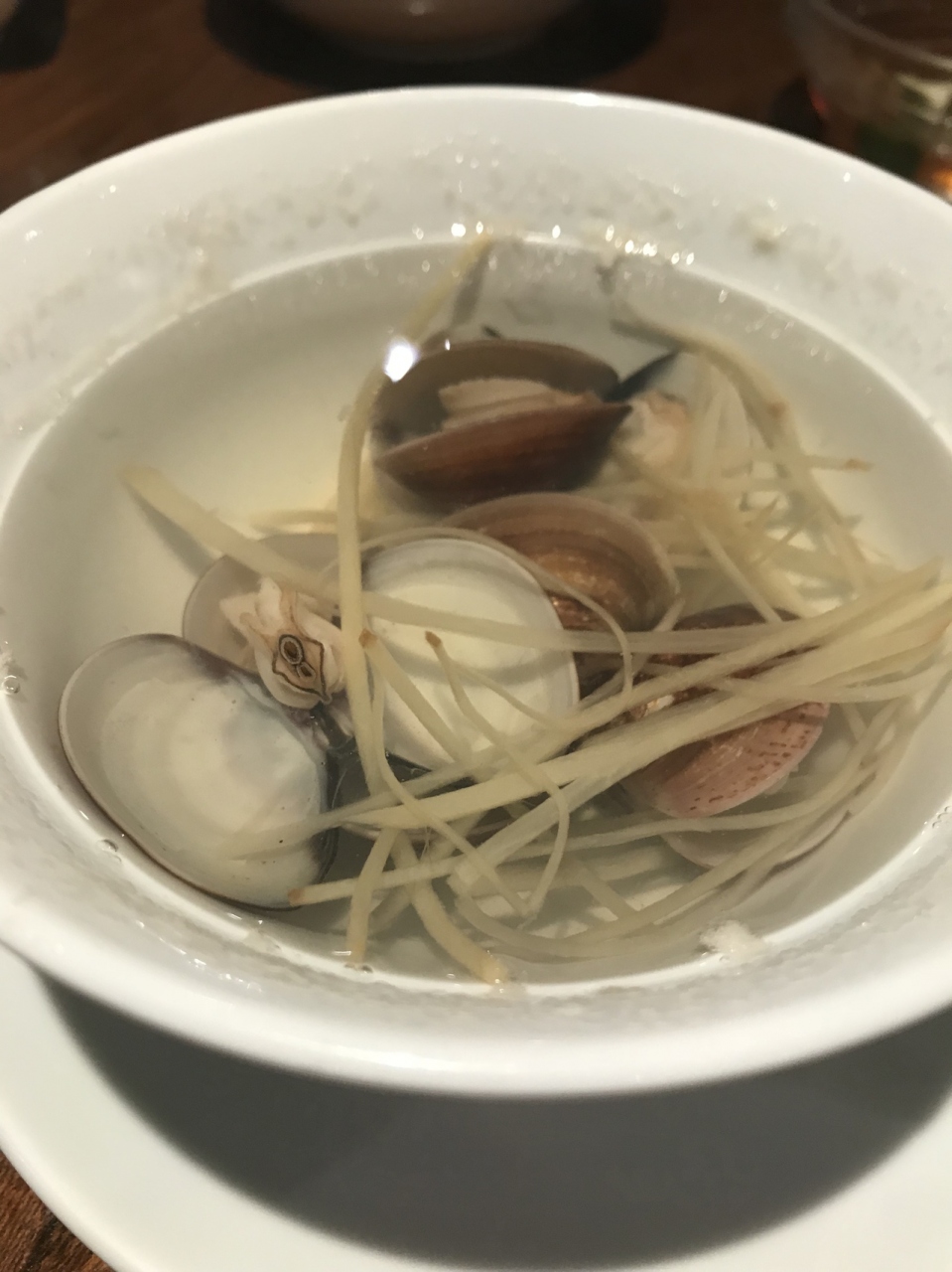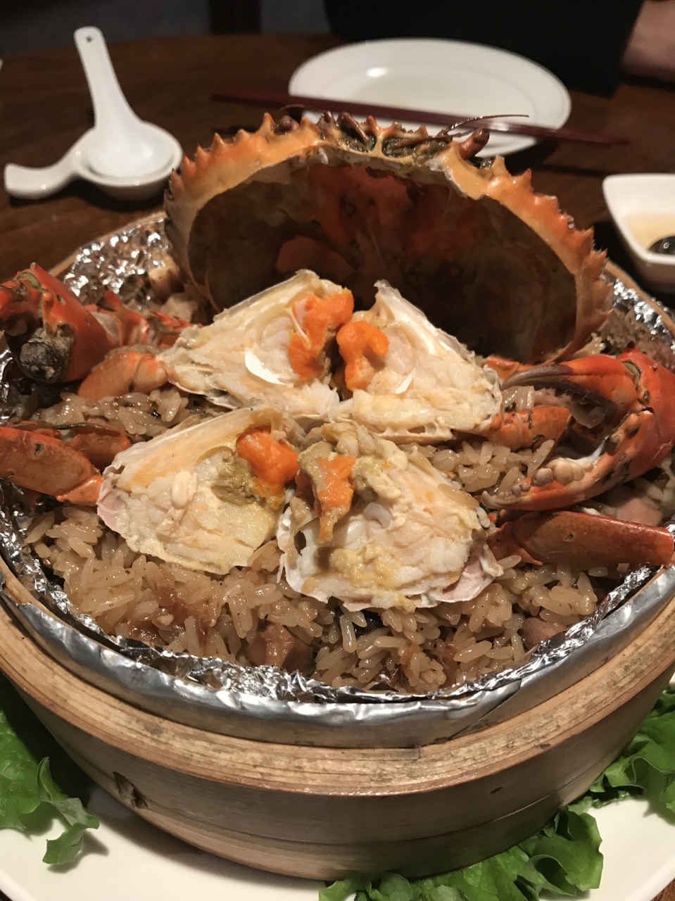ハマグリスープ、蟹おこわ、空芯采という定番にソフトドリンクを二杯で9000円くらいしました。おこわは少し冷えてるし、蟹は特に食べるところもなく、蛤スープはまったく味がなかった。