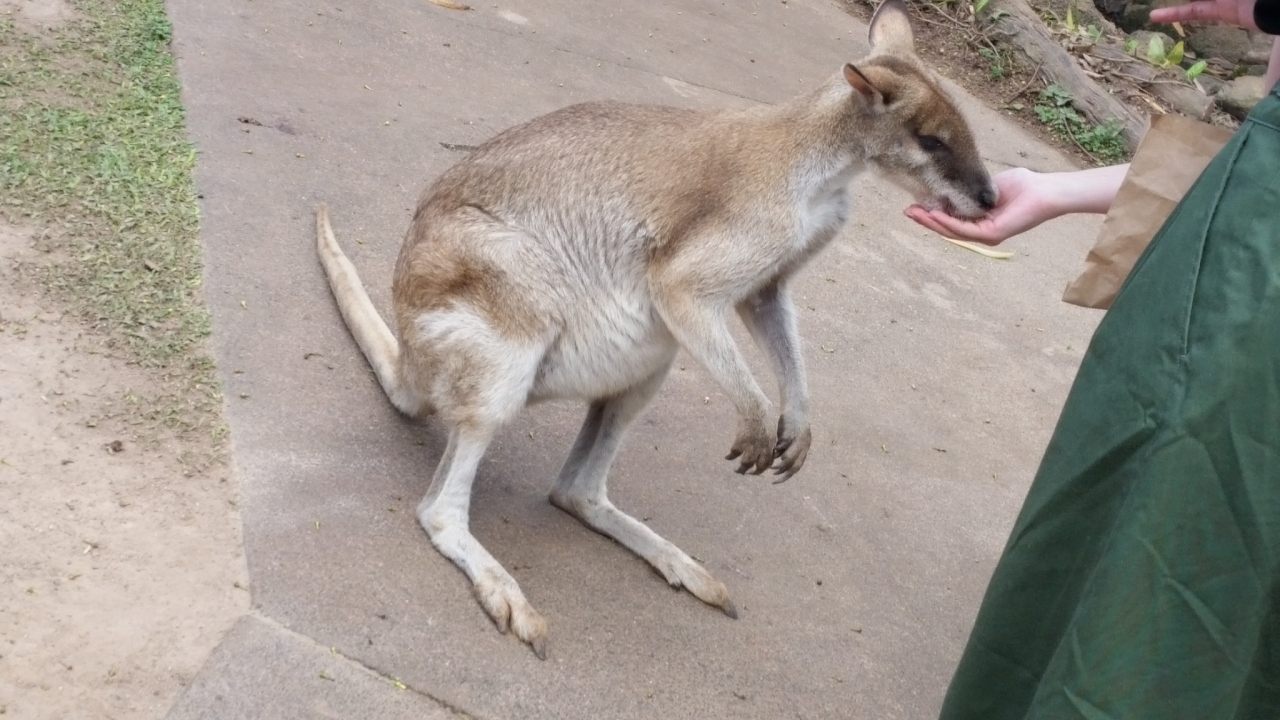 「キュランダ観光デラックス」ツアーで訪問しました。園内では自由に動きました。コアラを抱っこして写真を撮りたい人はそちらへ。私たちはカンガルーや、アリゲーター、爬虫類、ディンゴ、タスマニアンデビルなどを見て歩きました。カンガルーには餌付けもできました。可愛かったです。