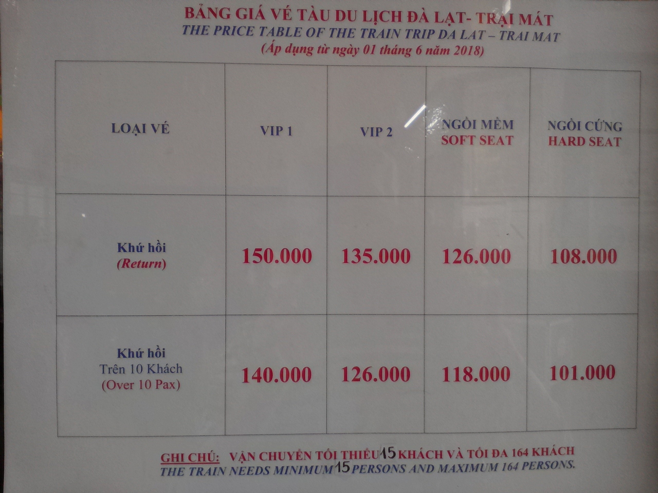 1933年に建てられフランス植民地時代に使用されていた駅舎。現在は7km離れたチャイマット駅(Trai Mat)との間を1日6往復観光列車が運行されています。詳しい時刻と運賃は写真を参照して下さい。