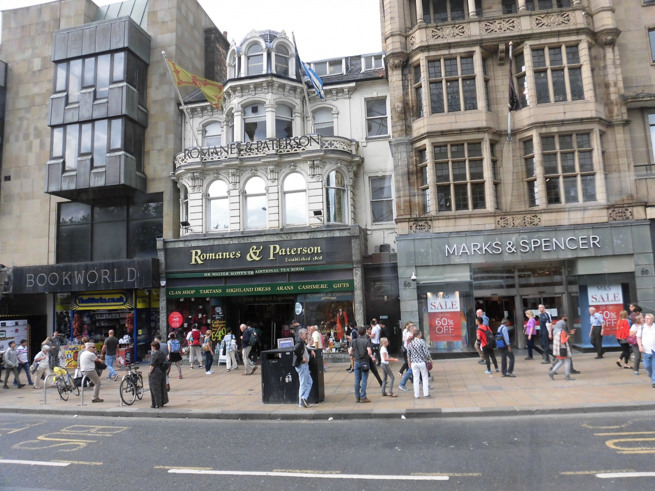新市街の「プリンセスストリート」には、デパートやブランドショップ、レストランやカフェ等、エジンバラの人達が買い物に来る所でしょうか。 ここも人通りはとても多かったです。 バスやトラムが走り、新市街のメインストリート。