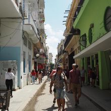 ハバナ旧市街エリアの通りの中で、最も活気のある通りだと思います。観光客が多く通行していました。この通り沿いにはアイスクリーム屋さんや、飲み物などを販売している小さなお店もあり、CUPも使用できるようでした。