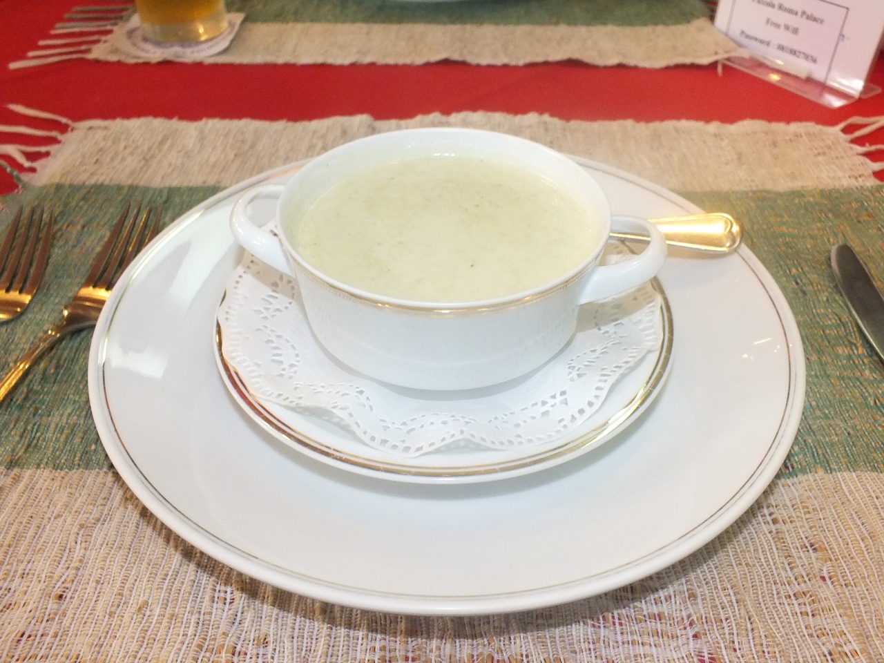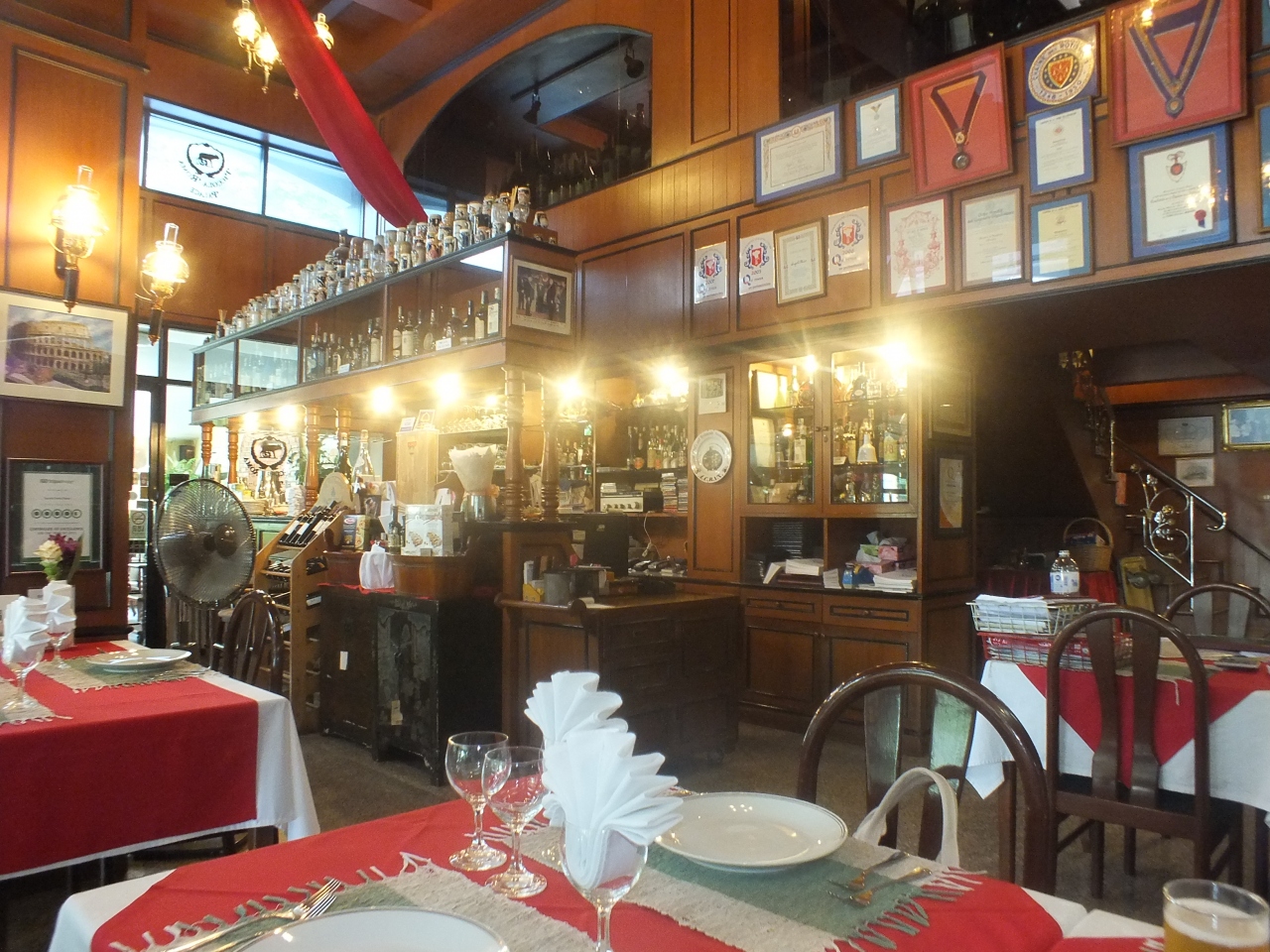 中には、よくわかりませんが、何かで表彰された写真や、タイのプリンセスが来店した時の写真などがが飾られて居ました。ビール、スープ、パスタを注文、料理はワゴンで運ばれチーズなどをかけるか否か、またかける場合はどの位か聞いてくれました。