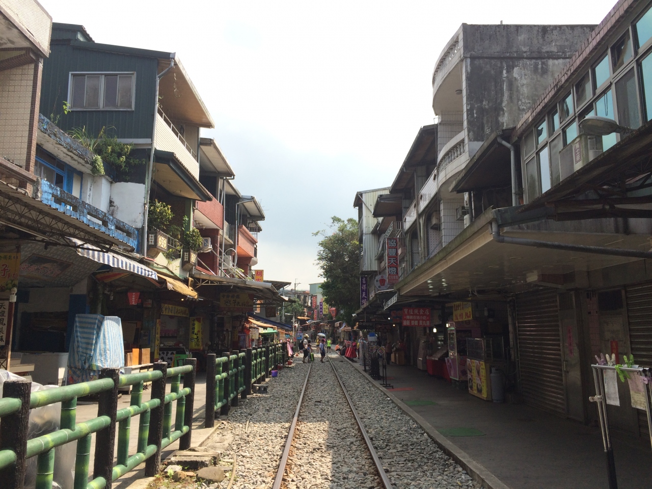 ランタン飛ばしで訪れたいと思う人が多い十分エリア。線路両脇に並ぶ商店,お土産屋。