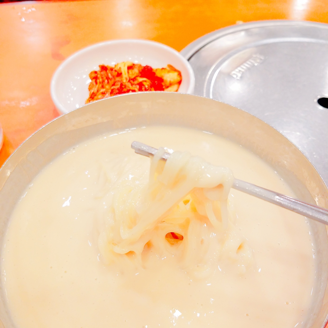 夏の定番、コングッスの有名店です。お昼時に行ったら外に行列が!でも心配無用。店内は広く回転も早いのですぐに席につけます。トロトロの濃厚スープに麺をからめておいしくいただきました。途中で味に飽きたらキムチと一緒に。でも量が多いのでスープは飲み干せなかったです…。